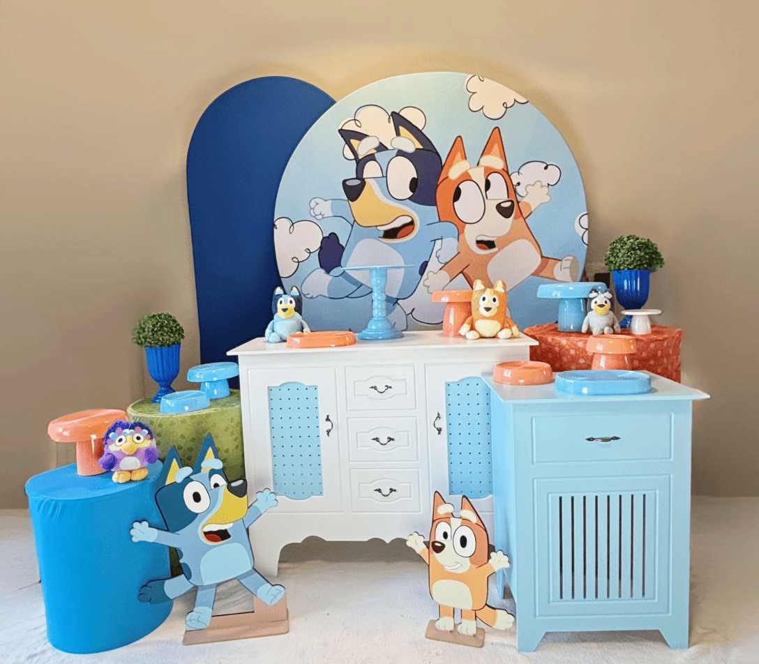 A festa mais divertida de Brisbane chegou a Curitiba! Com o kit pegue e monte Bluey Espetáculo, você garante o máximo de impacto visual e todos os detalhes do universo da família Heeler. Nossa linha Espetáculo oferece um cenário grandioso, com painel temático e peças decorativas que transformam o ambiente em um episódio vivo de Bluey. Ideal para quem busca uma decoração de festa infantil em Curitiba sem abrir mão da riqueza de detalhes, este kit é completo. Com a praticidade do "pegue e monte", você receberá todos os itens necessários para montar a festa dos sonhos de forma simples, criando uma celebração inesquecível e cheia de imaginação.